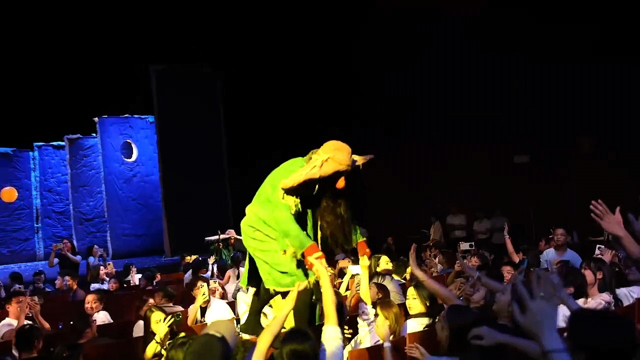 剧中扫数上演说念具皆是从法国空运而来,6千万片定制“雪花”、1800平淡米不错散失扫数这个词戏院的巨型蜘蛛网、直径2米的五彩互动气球……不雅众不仅能在戏院内切身感受到“摇风雪”扑面而来的刺激,还能与怯夫互动游戏,“秒回”童年。